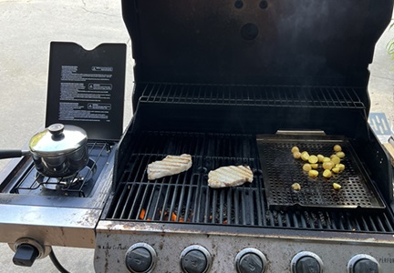 Have you ever lived without a kitchen for a month? We thought we had planned for it, but life is not much like we expected it to be. Our refrigerator is in the family room and our microwave is in the dining room perched atop our disconnected range. But by running a long extension cord to a functioning electrical outlet, we were able to get it working. For several weeks now, our meals have been prepared mostly on our little gas grill. I have learned how to prepare a meal such as grilled pork chops, roasted potatoes, and a steamed vegetable all at once on the grill. Man, I’m grateful for that little grill. And we seem to eat out a little more than we used to.