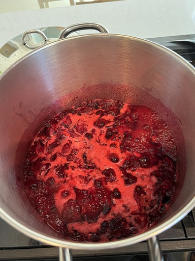 Next I simmered the seed pods in water to extract the natural pectin they contain. Using that water, it was time to begin making the jam.