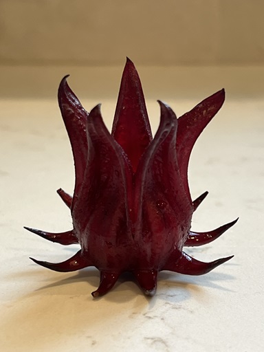 What is that thing that looks like some sort of spooky Halloween decoration? It is the October newsletter, but the picture has nothing to do with Halloween. It’s a rosella, perfectly edible, full of all kinds of nutrients, and eaten all kinds of ways. It’s flavor resembles a cranberry; strong and bitter when eaten raw. But you can put in your salad raw, you can steep it as a tea and, yes, it makes a WONDERFUL jam! But what is a rosella? This is what happens to a roselle hibiscus blossom when it gets done blooming.