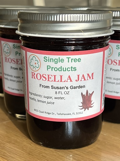The roselle plant is an annual, and my neighborhood friend Susan planted one in her garden. It grew a lot bigger than expected, so she invited me to come over and harvest all I wanted. An opportunity for a new jam! I was so excited! I harvested a few to make a test batch. It wasn’t too difficult to make, and the initial attempt yielded about 1.5 cups. And the flavor was amazing! Sweet, strong, and tangy; it resembles your Thanksgiving cranberry jelly. I needed to make a couple of adjustments to the recipe, but this stuff was definitely worth making and selling.